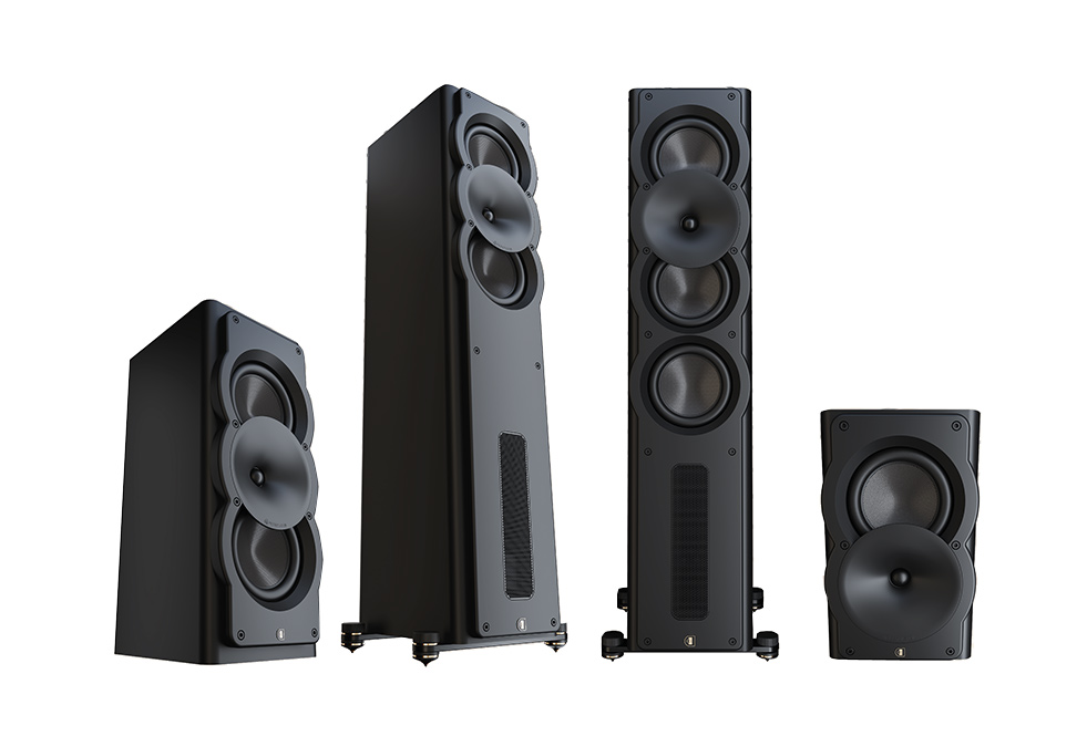 - A4t: Standlautsprecher mit drei Carbonfaser-Tieftönern in Bassreflex-Abstimmung, für große Räume oder präzise Heimkino-Setups.